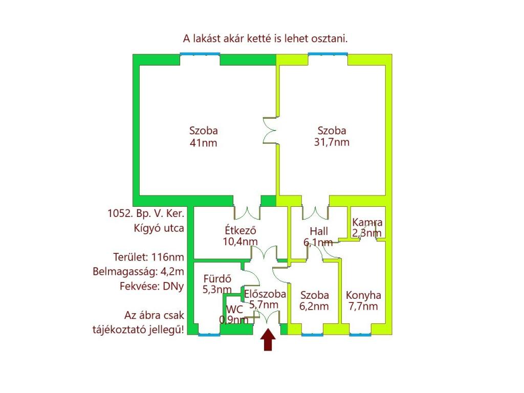 A lakást korábban egy 5 tagú család lakta, így a kialakítása kifejezetten praktikus: 2 utcai és 1 udvari szoba, nagy, 12 nm-es hall, amely étkezőnek, nappali-bővítménynek vagy dolgozósaroknak is ideális.