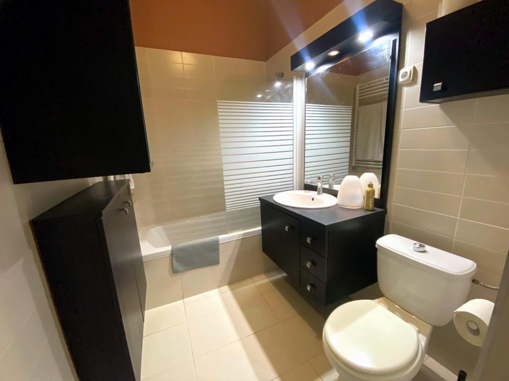 A fürdőszoba zuhanyzós, WC-vel egyben.