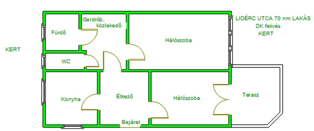 The property has a 70 m floor area with a practical and bright layout. It features two separate bedrooms, both south-east facing, overlooking a green garden, one of which has direct access to a terrace. The rooms are unfurnished, allowing the tenant to furnish them according to personal preference.