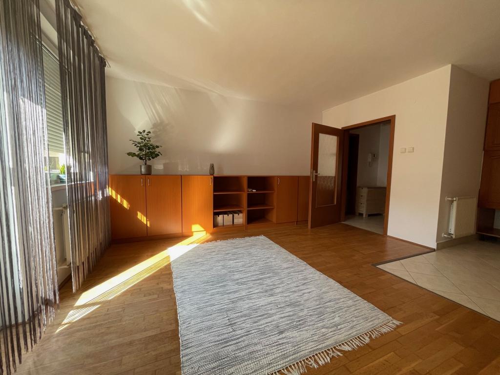 You can step out onto the balcony from the living room, which offers a pleasant view of a landscaped inner garden. The bathroom has a bathtub, and the WC is also located here. Heating for the home and hot water is provided by a gas boiler, and there is air conditioning for a comfortable temperature in the summer. The entrance hall features a large built-in wardrobe for convenient storage.