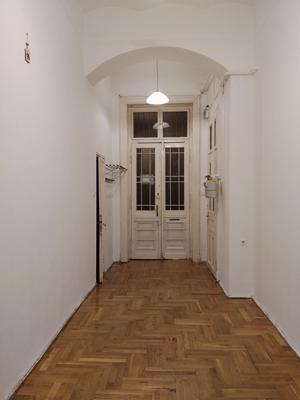 VI. Teréz körúton a Nyugati pályaudvarral szemben rendezett, lift nélküli ház I. emeletén kiadó 90 nm-es jó állapotú lakás.