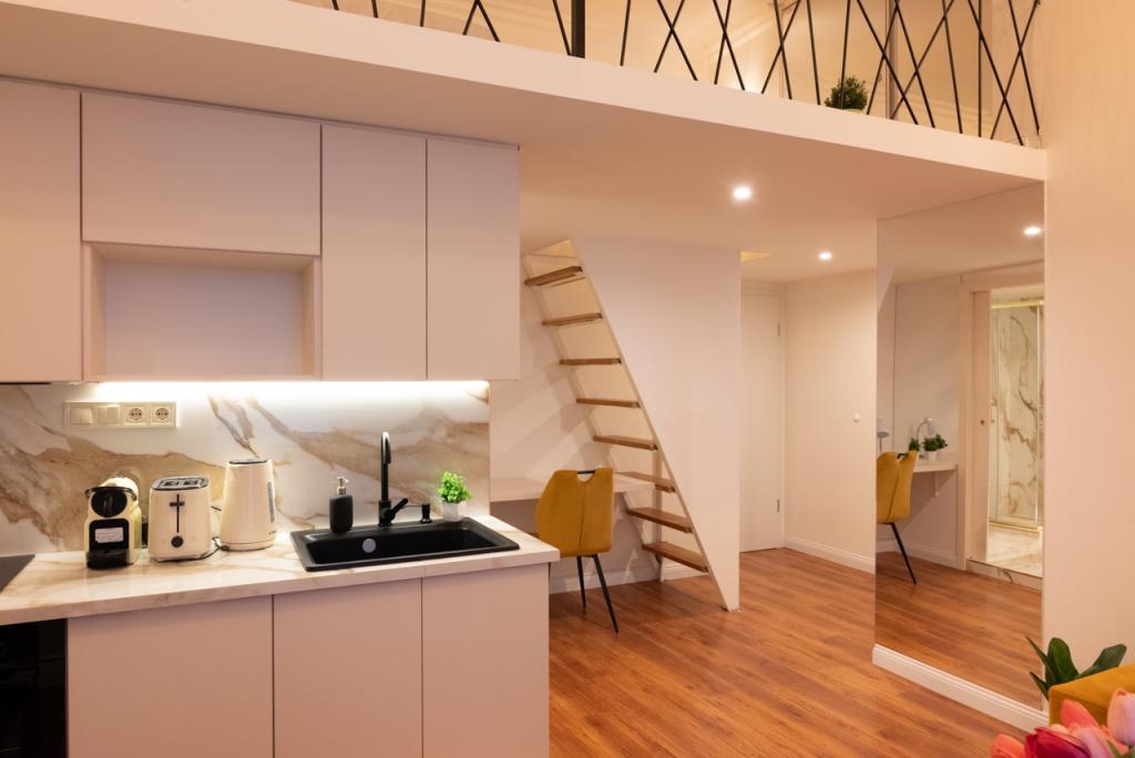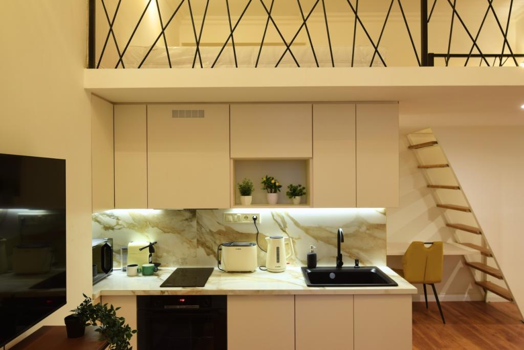 Minden stúdió külön saját konyhával, fürdőszobával és galériás hálórésszel rendelkezik, így tökéletes választás akár diákoknak, akár egyéni bérlőknek, akár cégeknek, akik munkavállalóik számára keresnek kulturált belvárosi szállásmegoldást.