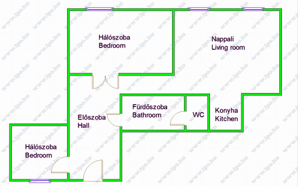 A lakás rendkívül világos. Egy tágas amerikai konyhás nappaliból (20 m2), egy hálószobából (16 m2) és egy félszobából (7 m2) áll.