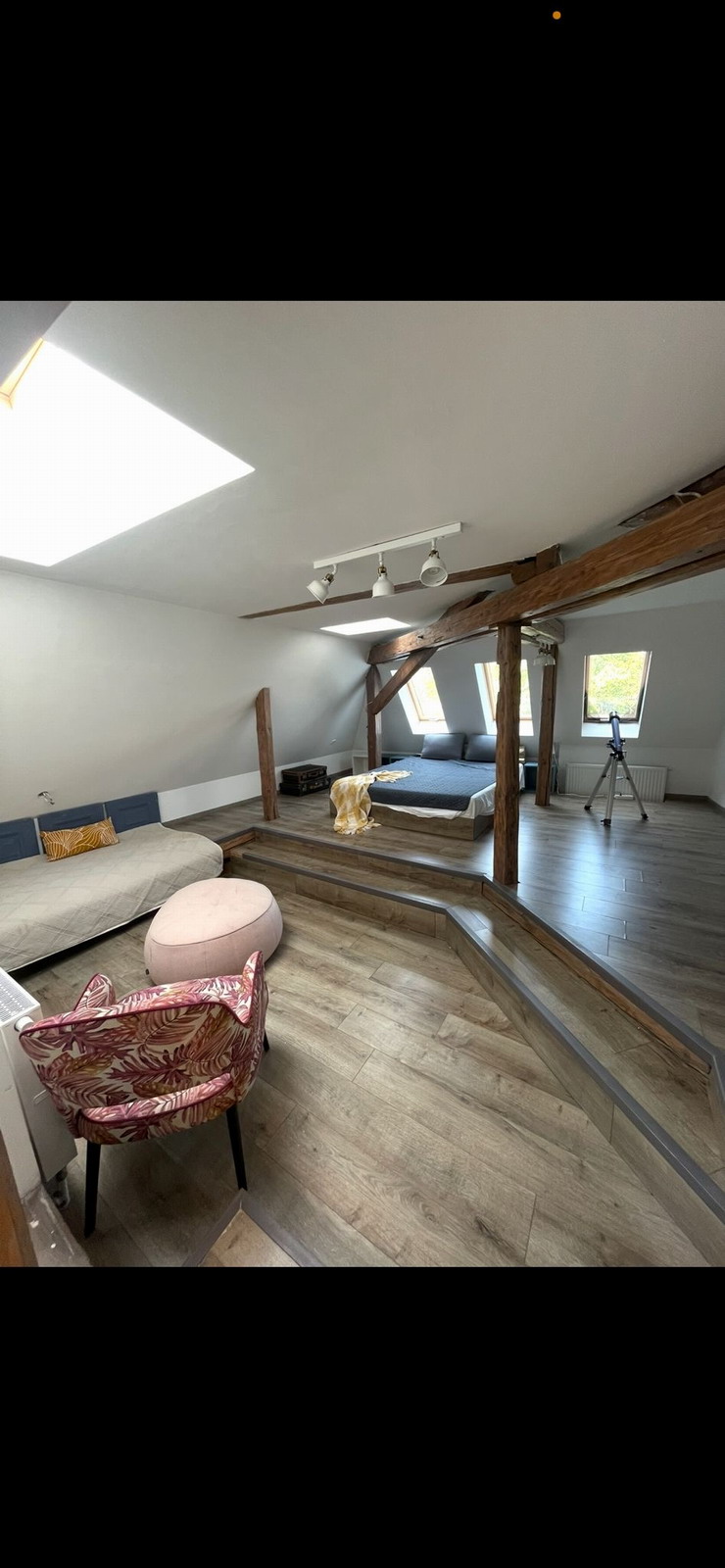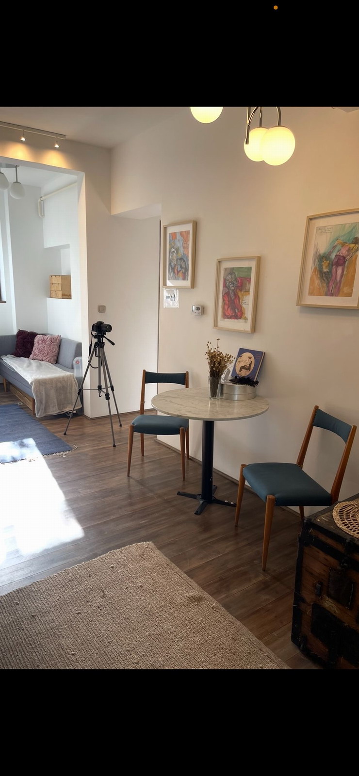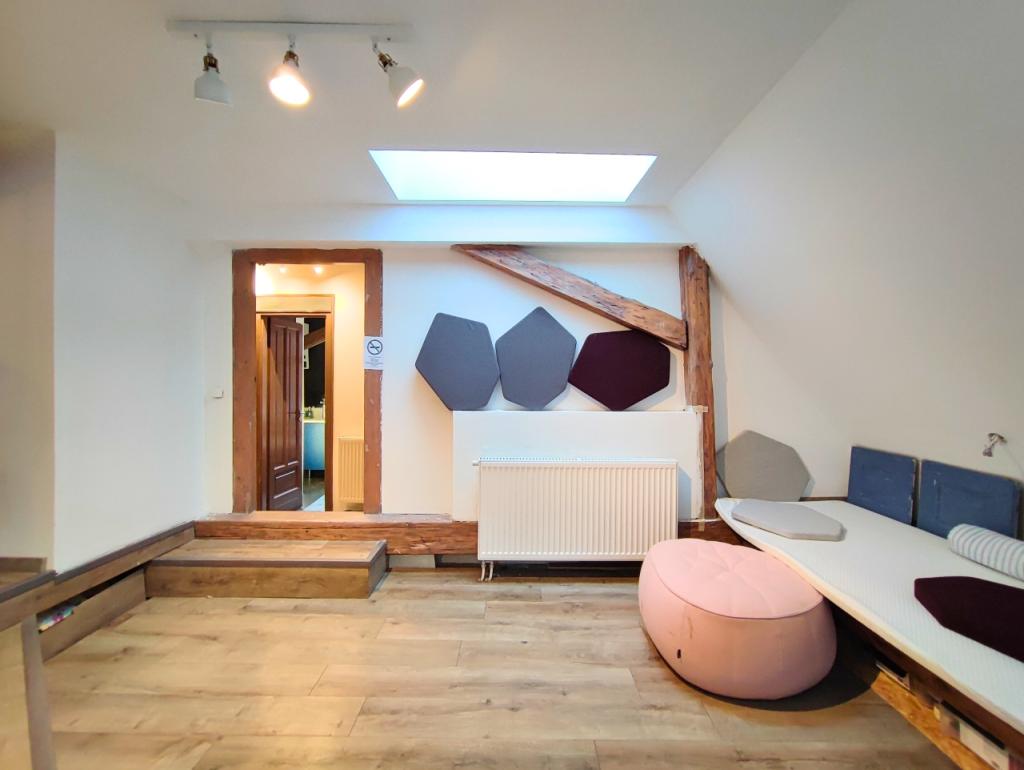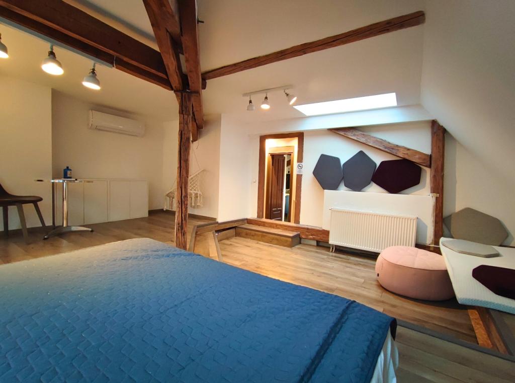Az ingatlan elrendezése ideális, nappali és két hálószoba, valamint egy különálló dolgozórész biztosítja a kényelmes, harmonikus otthont akár otthoni munkavégzéshez is.