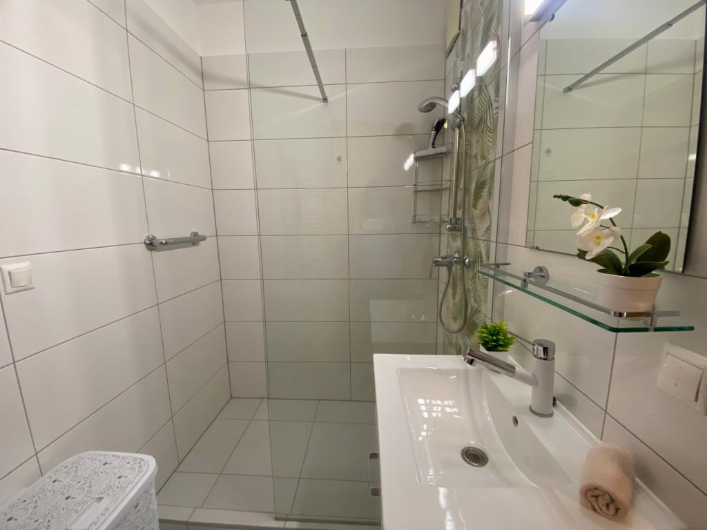 A fürdőszoba két éve teljes felújításon esett át, így modern, tágas és igényes kialakítású.