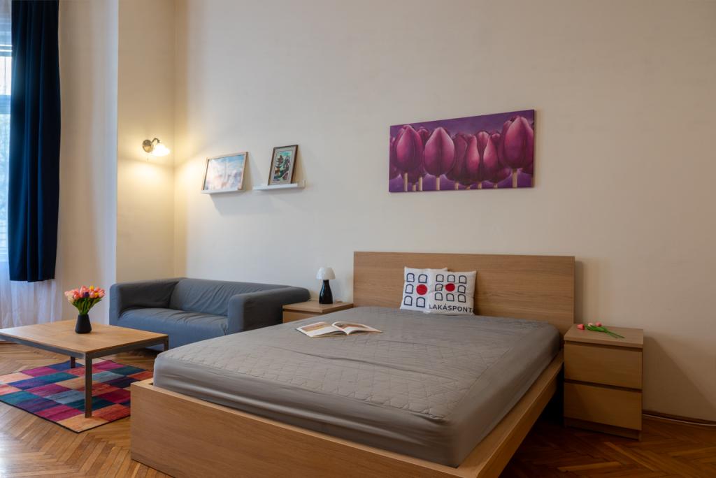 Budapest, V. Váci utcában a Ferenciek terénél, 41nm-es, emeleti, utcai, nagyon világos, tágas, IKEA bútorokkal berendezett, és felszerelt, fiatalos lakás kiadó.